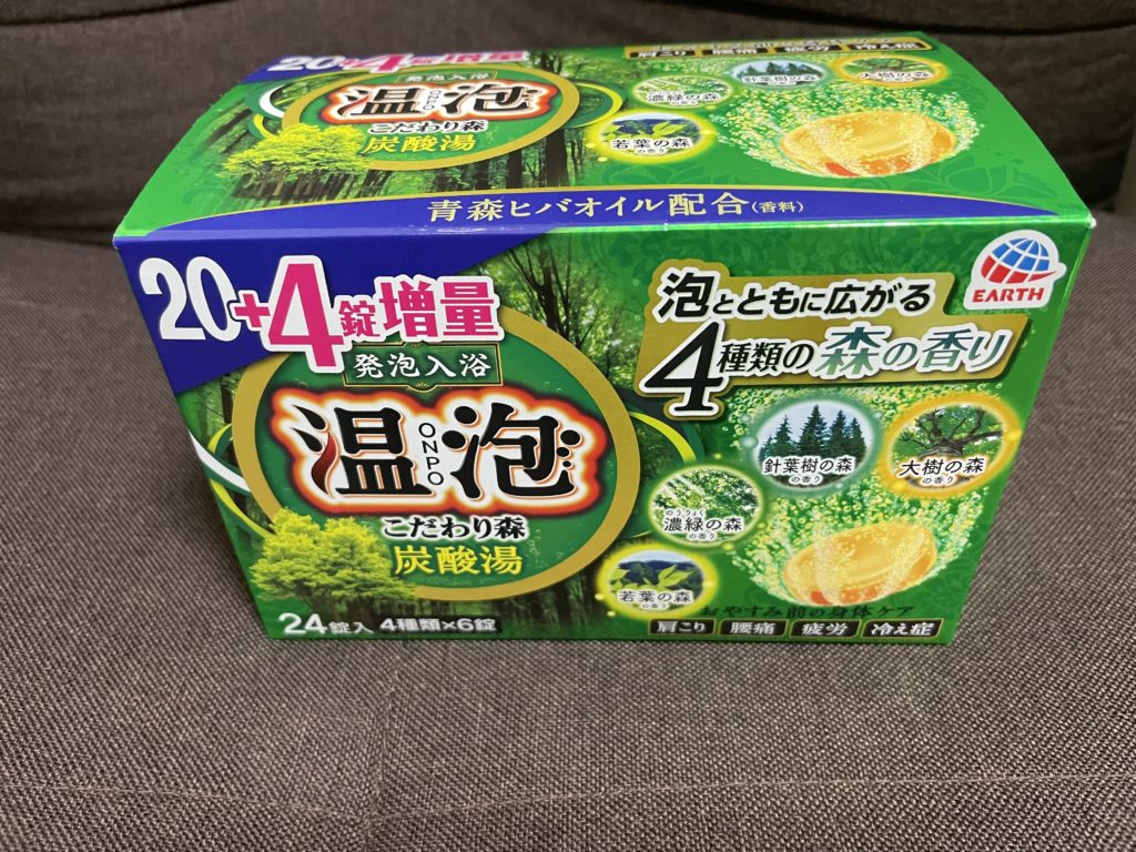 「温泡」の他のシリーズ(桃やゆず)もよい香りなのですが、甘い匂いのため長時間入浴をするにはちょっと向いていないと個人的には感じました。ゆったりお風呂に入りたいという方はやはりこの森の香りシリーズがおススメです。